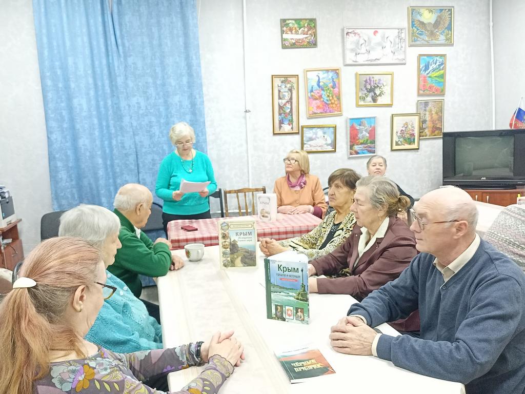 Об интереснейших событиях и исторических фактах Крымского полуострова рассказала Екатерина Рассихина. Ольга Гвоздева рассказала о роли Крыма и героической обороне Севастополя в Великой Отечественной войне, а также о военно-морской базе Черноморского флота России. О воссоединении и законодательных актах рассказала Антонина Онуфрей. На полуострове проживает более 20 национальностей, теперь братские народы России и Крыма снова вместе. 2026 год объявлен Президентом РФ В.В Путиным - Годом Единства Народов России. В ходе мероприятия была проведена викторина «Знаем ли мы Крым», участники ответили на все её вопросы. Были дружно спеты песни- Крым вернулся домой! Легендарный Севастополь! Крымская Весна! Мероприятие прошло на патриотическом подъеме и завершилось чаепитием.