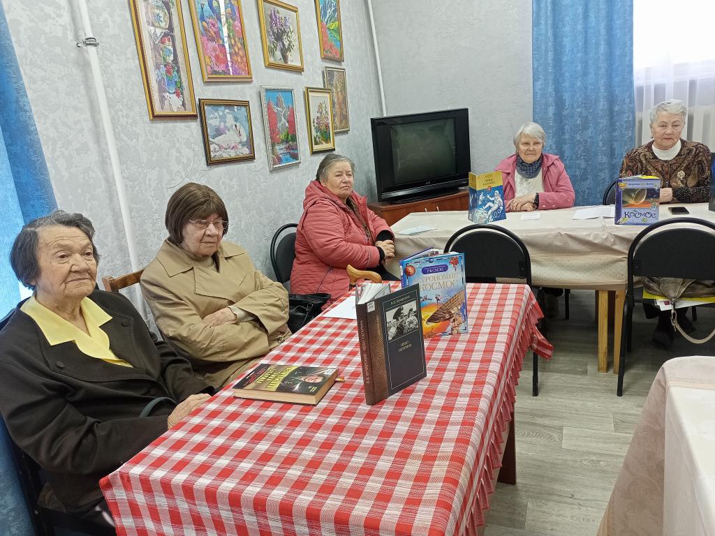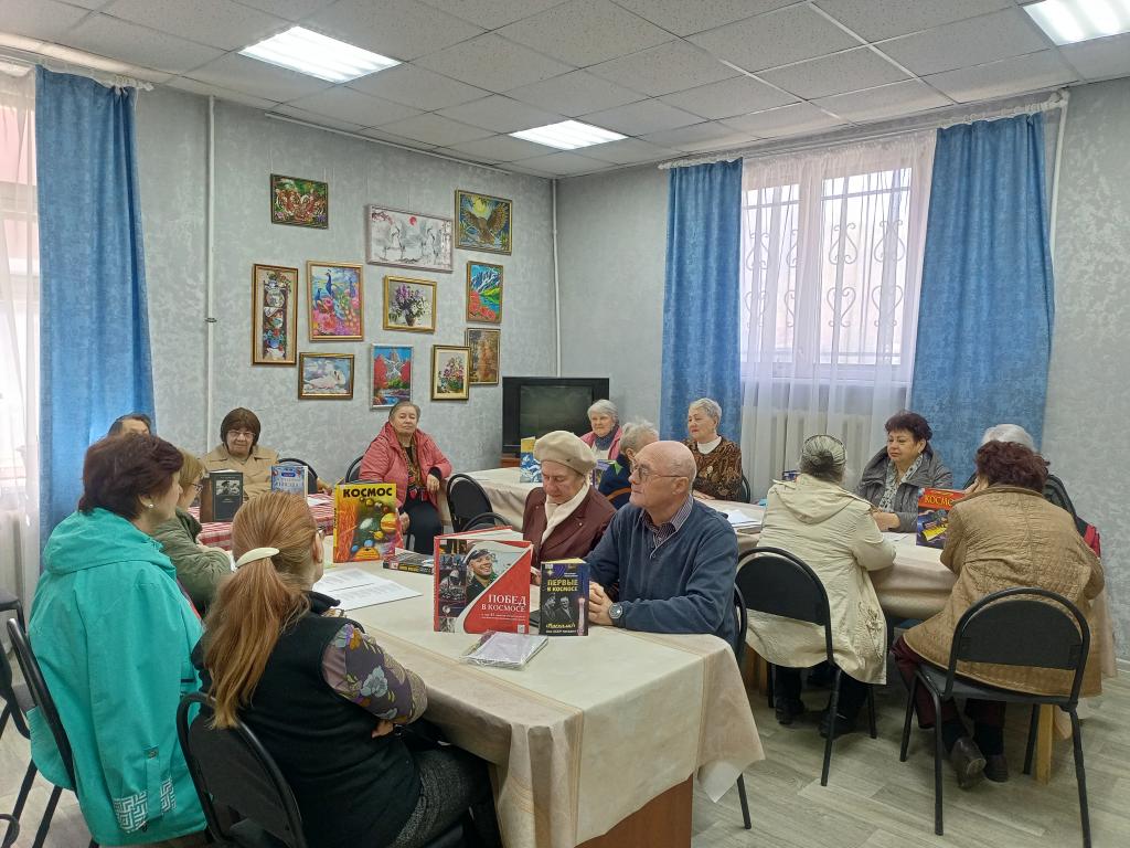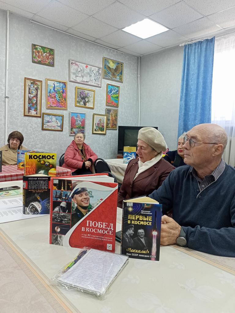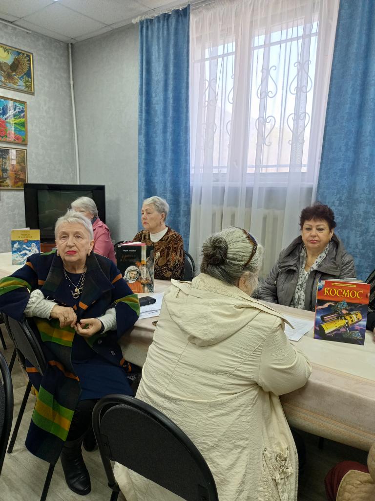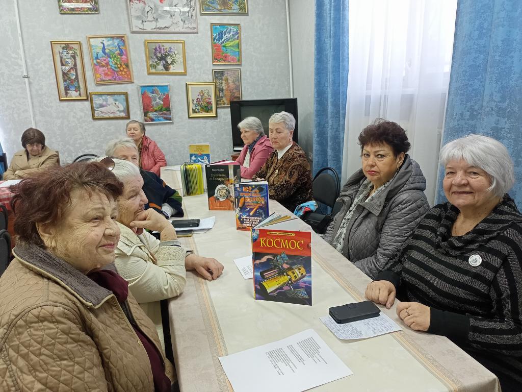 Светлана Нитченко рассказала об истории написании песен на космическую тему и первых исполнителях. Дружно были исполнены песни: "Я-Земля", «Он сказал поехали», « Я верю друзья" -любимая песня космонавтов, «Трава у дома», "Нежность" ,"Знаете каким он парнем был." Валентина Юдина прочитала стихотворение поэтессы Инны Левченко «улыбка Гагарина». Мероприятие завершилось чаепитием.